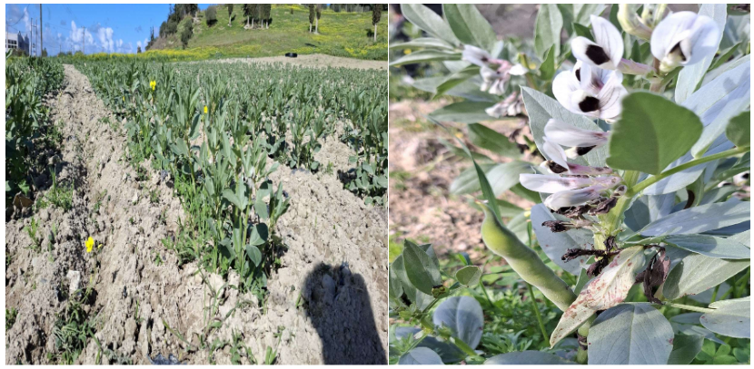 The cultivation of fava beans took place in November 2024. During the period from November to January, there was a slight but steady increase in plant growth, accompanied by fertilization. From January to April 2025, systematic inspections of the experimental fava bean cultivation were performed, revealing a gradual effect of the fertilizer on the plant tissue. Normal vegetative growth was observed, along with regular photosynthetic activity and no signs of phytopathology or nutrient deficiencies.